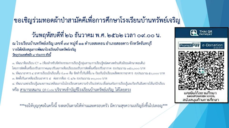 กิจกรรมทอดผ้าป่าสามัคคีเพื่อการศึกษาโรงเรียนบ้านทรัพย์เจริญ