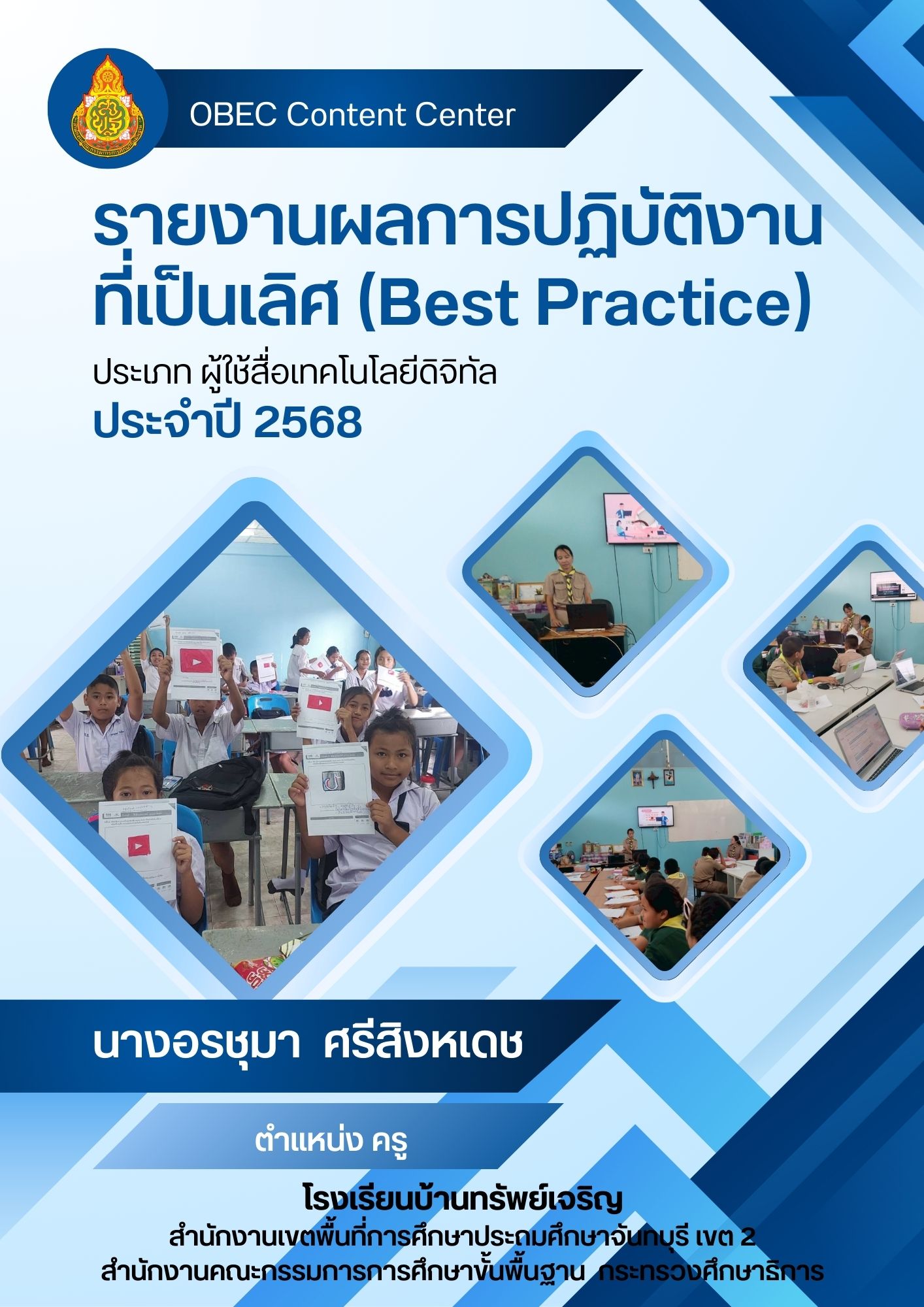 รายงานผลงานที่มีวิธีปฎิบัติที่เป็นเลิศ (Best Practice) ประเภทผู้ใช้สื่อเทคโนโลยี OBEC Content Center